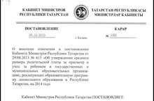Постановление от 26.12.2013г. № 1065 «О внесении изменения в постановление КМ РТ от 29.08.2013г. № 615 «Об утверждении среднего размера родительской платы в дошкольных образовательных учреждениях на 2014 год». 31.12.2013