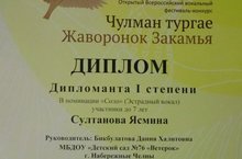 Наша воспитанница - Султанова Ясмина стала дипломантом 1 степени в номинации "Соло" (эстрадный вокал)!