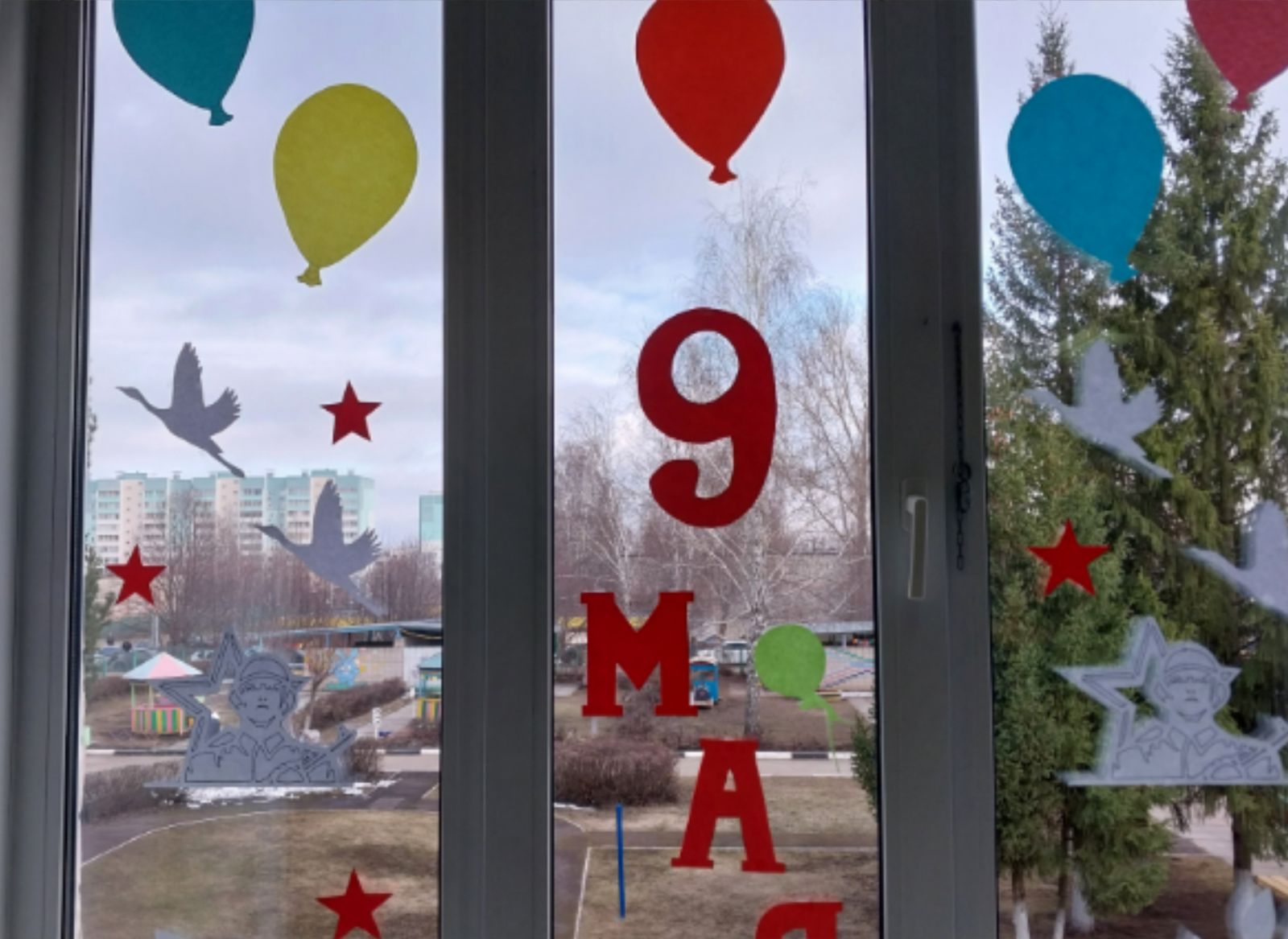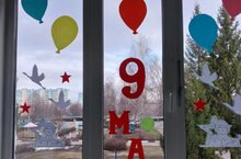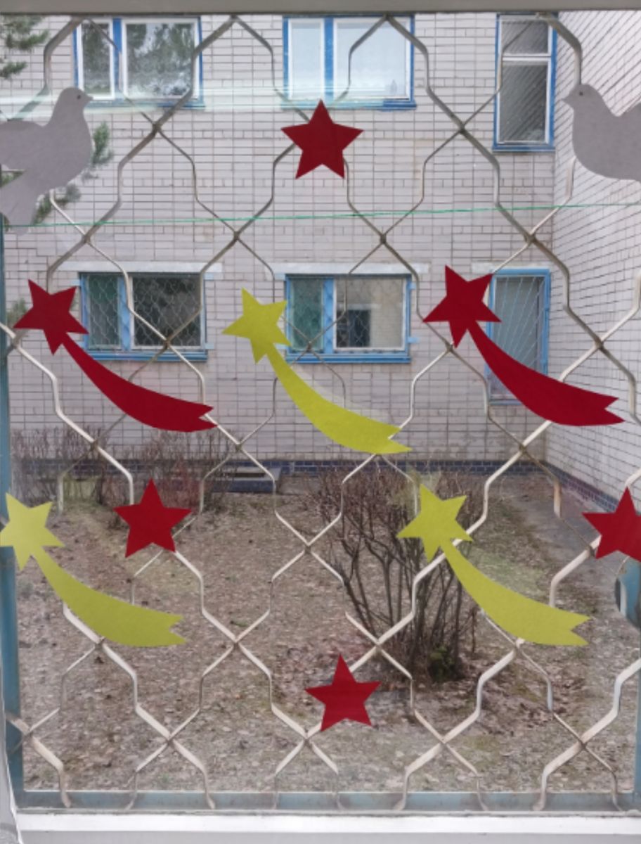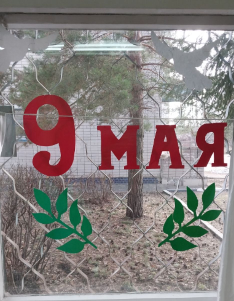 Наши малыши вместе с воспитателями украсили окна детского сада символами Победы.