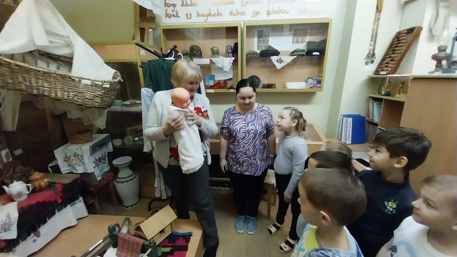 Сегодня дети группы 9 посетили музей "Мирас" в школе №58. В ходе экскурсии они познакомились с бытом татарского народа и узнали много интересного о экспонатах, связанных с Великой Отечественной войной.