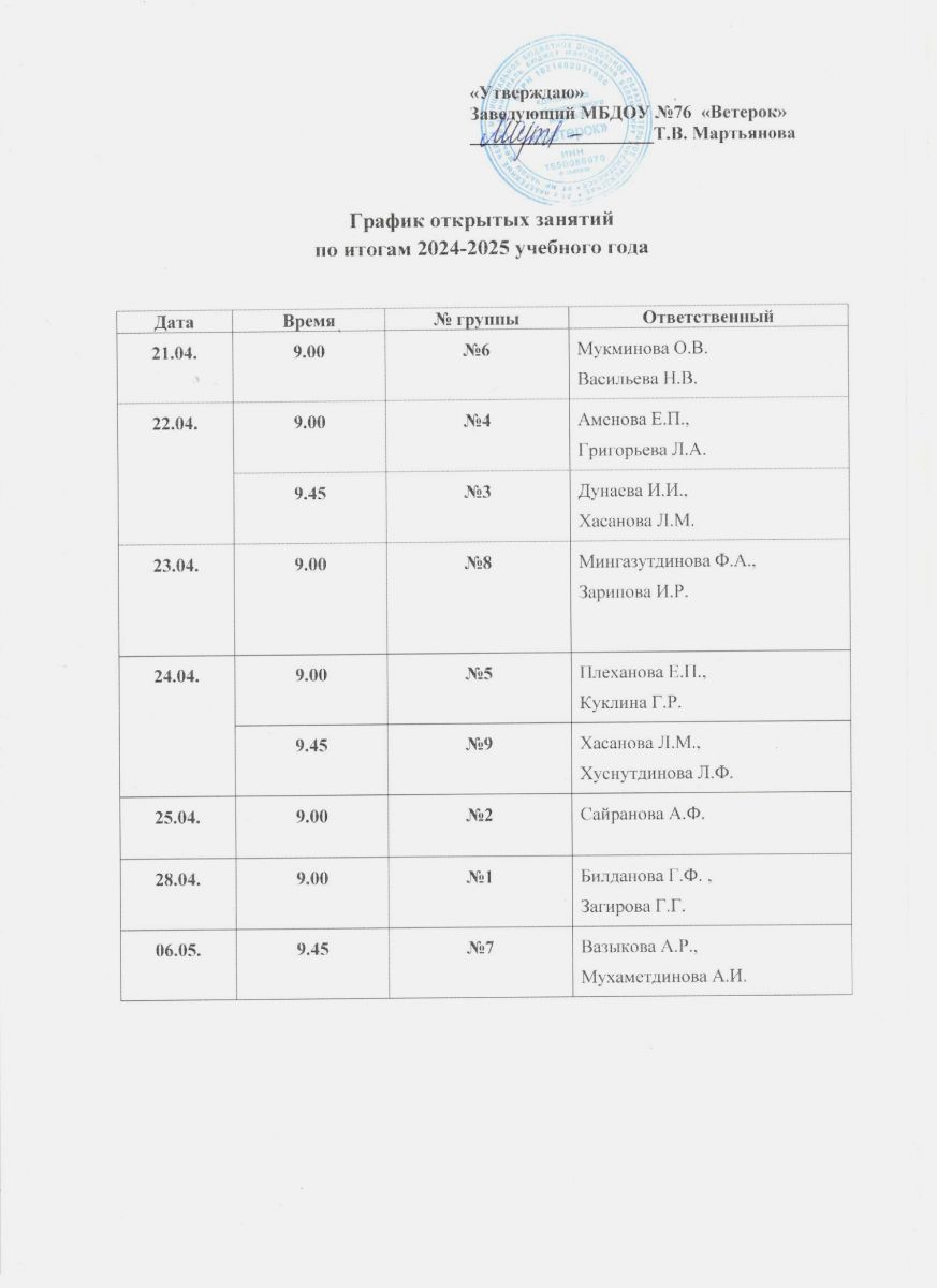 График открытых занятий 14.04.2025