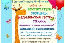 В детский сад требуются воспитатель, прачка, уборщица, медицинская сестра, бухгалтер, младший воспитатель.Добро пожаловать в наш дружный коллектив!