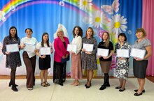 Поздравляем с Днем воспитателя и всех дошкольных работников! Сегодня на торжественном собрании собрались всем дружным коллективом. Поздравили ветеранов и молодых коллег с занесением на доску почета, а Елену Евгеньевну и Елену Николаевну с вручением нагрудного знака. Поставили сценку по сказке "Репка", поиграли в игру "Где логика?" Как всегда было весело, тепло и душевно. От всей души желаем счастья, радости, чудес, терпения, удачи, сил и вдохновения, достатка, мира, гениальности идей, волшебных моментов в жизни и значительных успехов в воспитании детей. Здоровья вам и всего самого доброго!