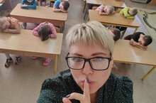 Поздравляем с победой в конкурсе "Селфи с педагогом" Родину Оксану Евгеньевну с ее фото "Есть физминутка, а у нас "спиминутка"!