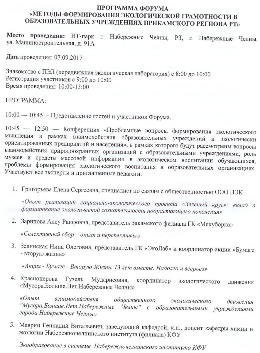 Опубликовано: 08.09.201707.09.2017 года в IT-парке г.Набережные Челны состоялся Экологический форум "Методы формирования экологической грамотности в образовательных учреждениях Прикамского региона РТ - 2017"