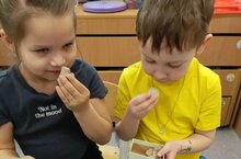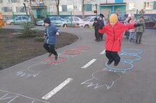 ЧП: на одной из площадок детского сада "Вишенка" обнаружены следы динозавров! Срочно сформирована экспедиция из группы 4. Наши герои откопали окаменелости, повторили маршрут древнего ящера, спасли "яйцо" от разрушения, пережили метеоритный дождь, перенесли "образцы грунта" в безопасное место. Миссия выполнена!