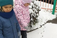 Дети 3 группы с интересом наблюдают за следами птиц.