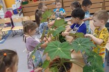 Сегодня дождь стучит по крышам, и моет все дорожки, крыши, наши качели и песочницы. И мы тоже сегодня моем! Моем комнатные растения, потому что они запылились, и стали грустными. После нашей дружной работы растения стали чистые и красивые, и мы стали радостные и довольные!