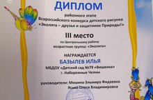 Поздравляем нашего воспитанника Базылева Илью с третьим местом в районном этапе Всероссийского конкурса детского рисунка "Эколята - друзья и защитники Природы!" Молодец, Илья, так держать!