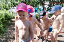 Наконец - то наступили жаркие деньки. Дети в детском саду с удовольствием принимают солнечные и воздушные ванны, играют, проводят время на свежем воздухе, ходят по "тропинкам здоровья". Ах, лето! Сколько радости и света!