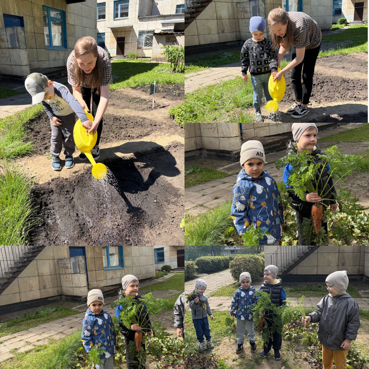 Ребята группы №7 вместе с воспитателями ухаживали за растениями в огороде: поливали, пололи, рыхлили. И огород их порадовал урожаем - свеклами и морковками.