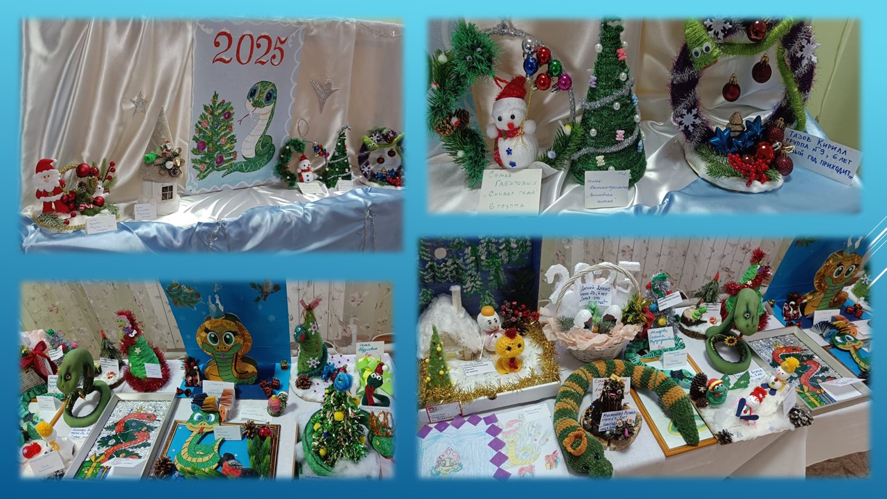 В нашем детском саду каждый год проходит выставка поделок на новогоднюю тематику. Наступающий 2025 год – год Змеи. Её ассоциируют с мудростью, элегантностью и преображением. Родители и дети изготовили поделки на тему «Символ Нового 2025 года». Для изготовления поделок было предложено использовать любой подручный материал и любую технику исполнения.
