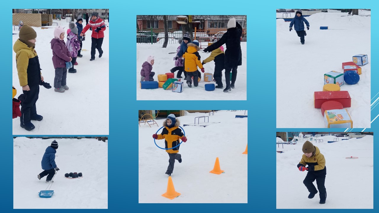 Воспитанники нашего детского сада достойно выполнили все задания: перевозили мины на салазках, строили убежище, командой выкладывали лучики солнца.