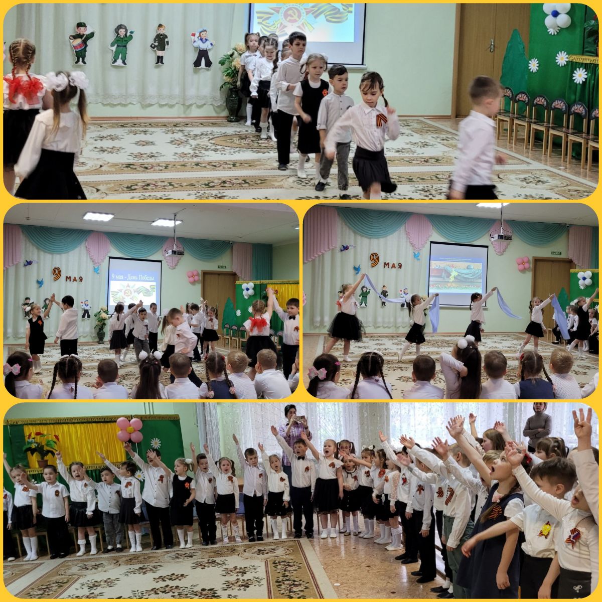 Мы устроили концерт, где дети представили свои номера - танцы, песни, стихи, посвященные Дню Победы. Показали видеоролики о том, как проходили бои на фронтах Великой Отечественной войны, и о подвигах советских солдат.