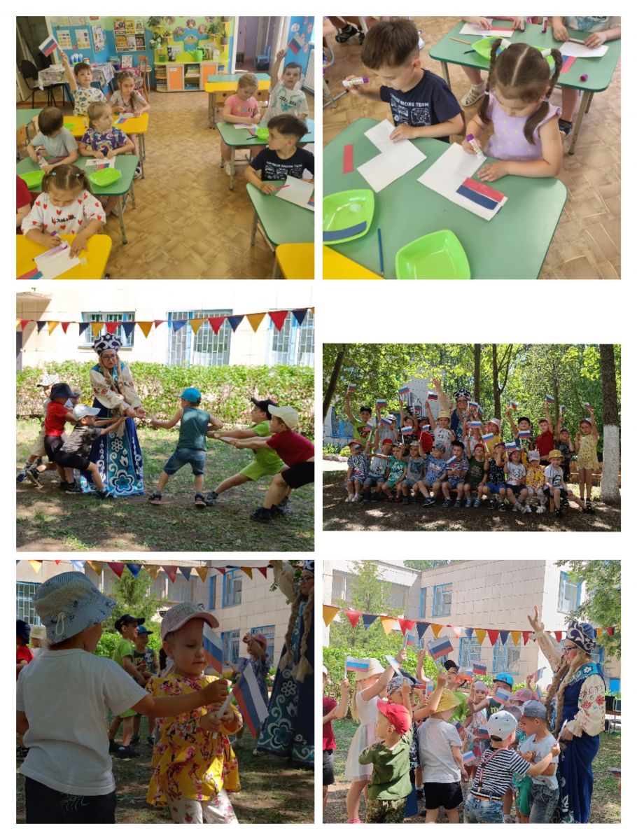 В нашем детском саду прошло праздничнoe мероприятие, посвященное этому событию. Целью мероприятия было формирование у детей представлений о России, как о государстве, о родной стране; воспитание чувства любви к родному краю, Родине. На празднике звучали гимн России и гимн Татарстана. Дети читали стихи, пели песни о России, танцевали. Играли в подвижные игры, соревновались.