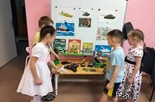 "Мәктәпкәчә яшьтәге балаларга әхлакый-патриотик тәрбия бирү эшен оештыру" айлыгы кысаларында, "Ватанны саклаучылар көне" алдыннан LEGO-конструктордан "Хәрби техника" күргәзмәсе оештырылды.
