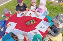 Воспитанники средних групп окунулись в мир творчества. Они мастерили «Разноцветные кораблики» в технике оригами. Самым важным этапом стало украшение парусов: дети с большим интересом приклеивали на свои кораблики три полоски — белого, синего и красного цвета, создавая точную копию российского флага. Старшие дошкольники приняли участие в беседе о значении и истории одного из главных символов России. Полученные знания они закрепили на творческих мастерских, где изготавливали аппликации «Флажок». Кульминацией праздника стал массовый флешмоб. Дети под музыку выполнили перестроение, создавая живую картину, символизирующую единство и мощь нашей страны.