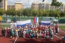 Для самых юных воспитанников праздник начался с веселой подвижной игры под ритмичную музыку малыши ловко проходили между кеглями, стараясь не уронить свой маленький триколор, что способствовало развитию ловкости и чувства патриотической гордости.