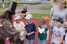 Дети и сказочные герои носились в весёлых эстафетах (оказывается, Лев не такой уж трусливый, когда надо бежать наперегонки! ).Потом все дружно оторвались на флешмобе — особенно зажигательно танцевал Дровосек, хотя его железные суставы слегка скрипели. А в финале началось волшебство — шоу мыльных пузырей! Огромные, переливающиеся, они летали по площадке, а ребята пытались их поймать, смеясь и визжа от восторга.
