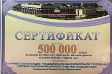 За высокие результаты в учебно-воспитательном процессе по итогам 2020-2021 учебного года МБДОУ "Детский сад №82 "Подсолнушек" признан лучшим детским садом в городе.