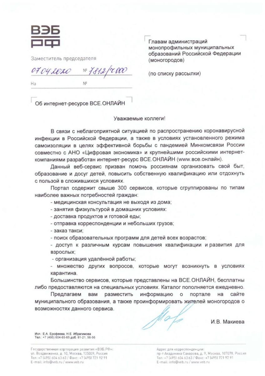 Минкомсвязь России совместно с АНО "Цифровая экономика" и крупнейшими российскими интернет-компаниями разработан интернет - ресурс ВСЕ.ОНЛАЙН (www.все.онлайн).Веб-сервис призван помочь россиянам организовать свой быт и досуг. Портал содержит больше 300 сервисов.