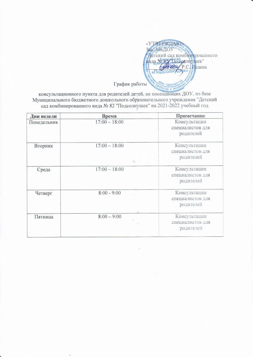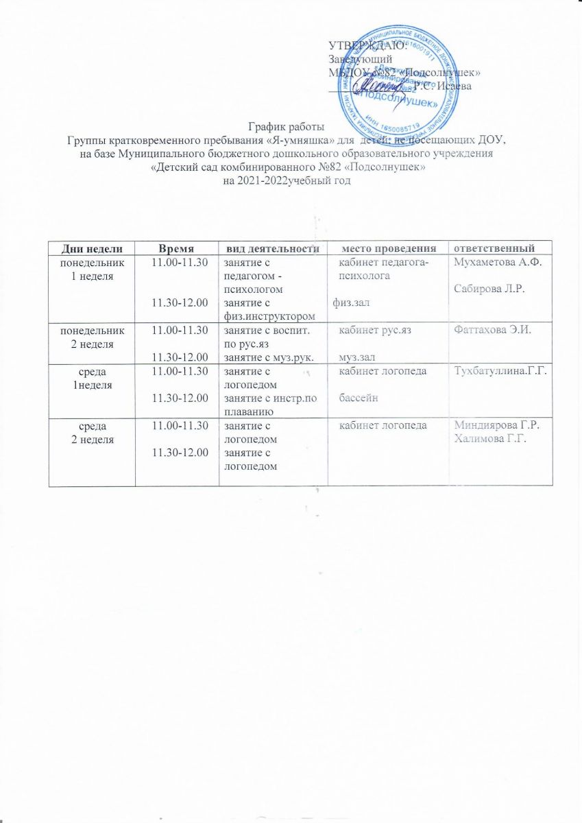 График работы группы кратковременного пребывания "Я-умняшка" на 2021-2022 учебный год