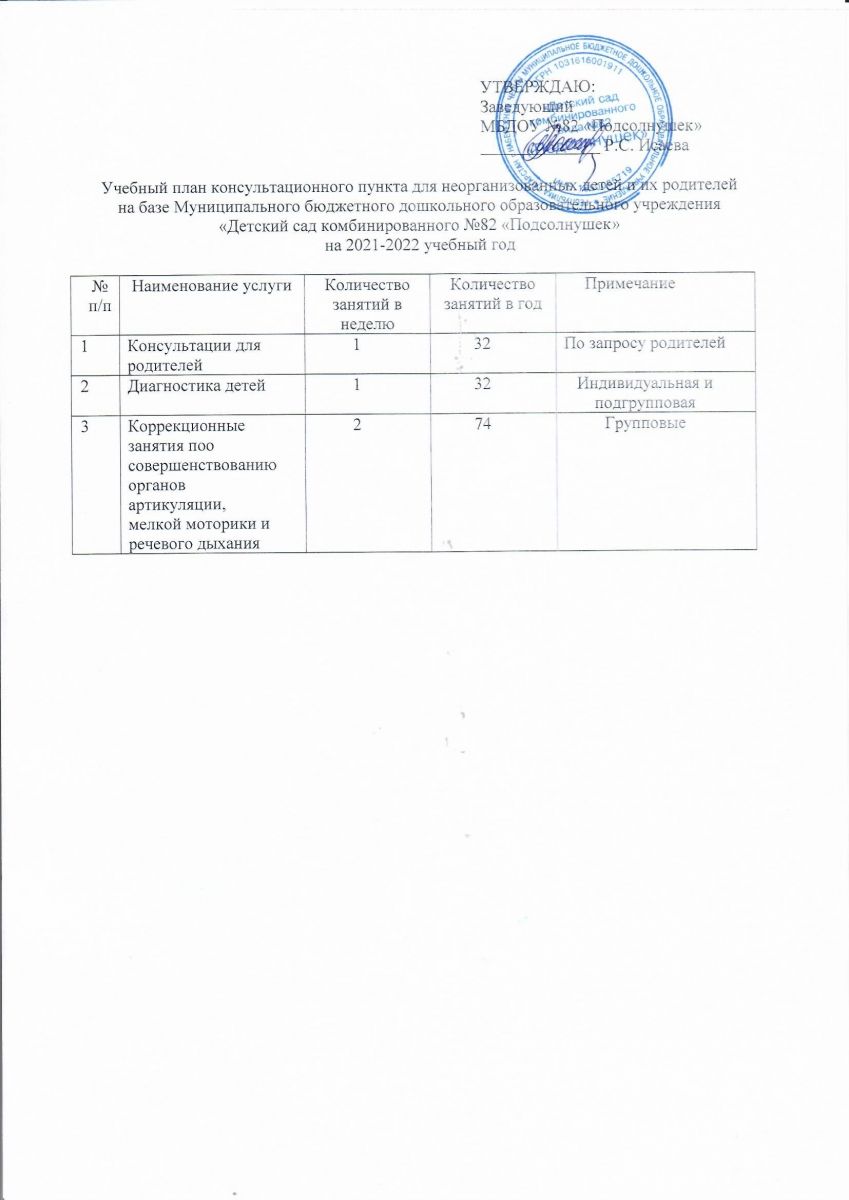 Учебный план консультационного пункта на 2021-2022 учебный год