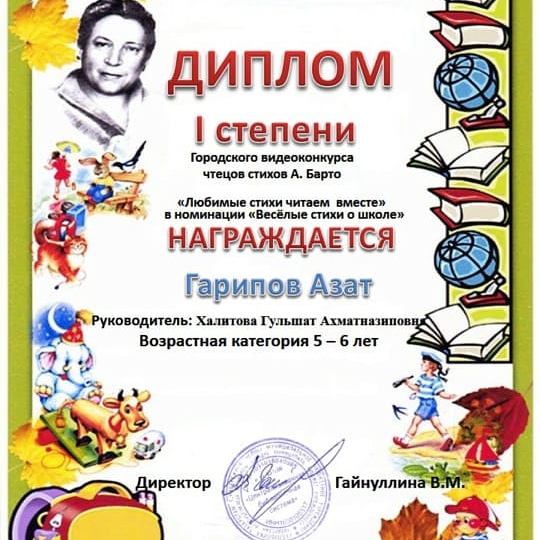 Городской конкурс чтецов стихов А.Барто, диплом первой степени