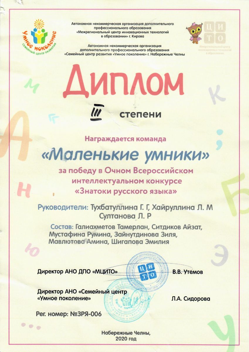 Международный литературный конкурс "Джалиловские чтения", диплом победителя (воспитанник)