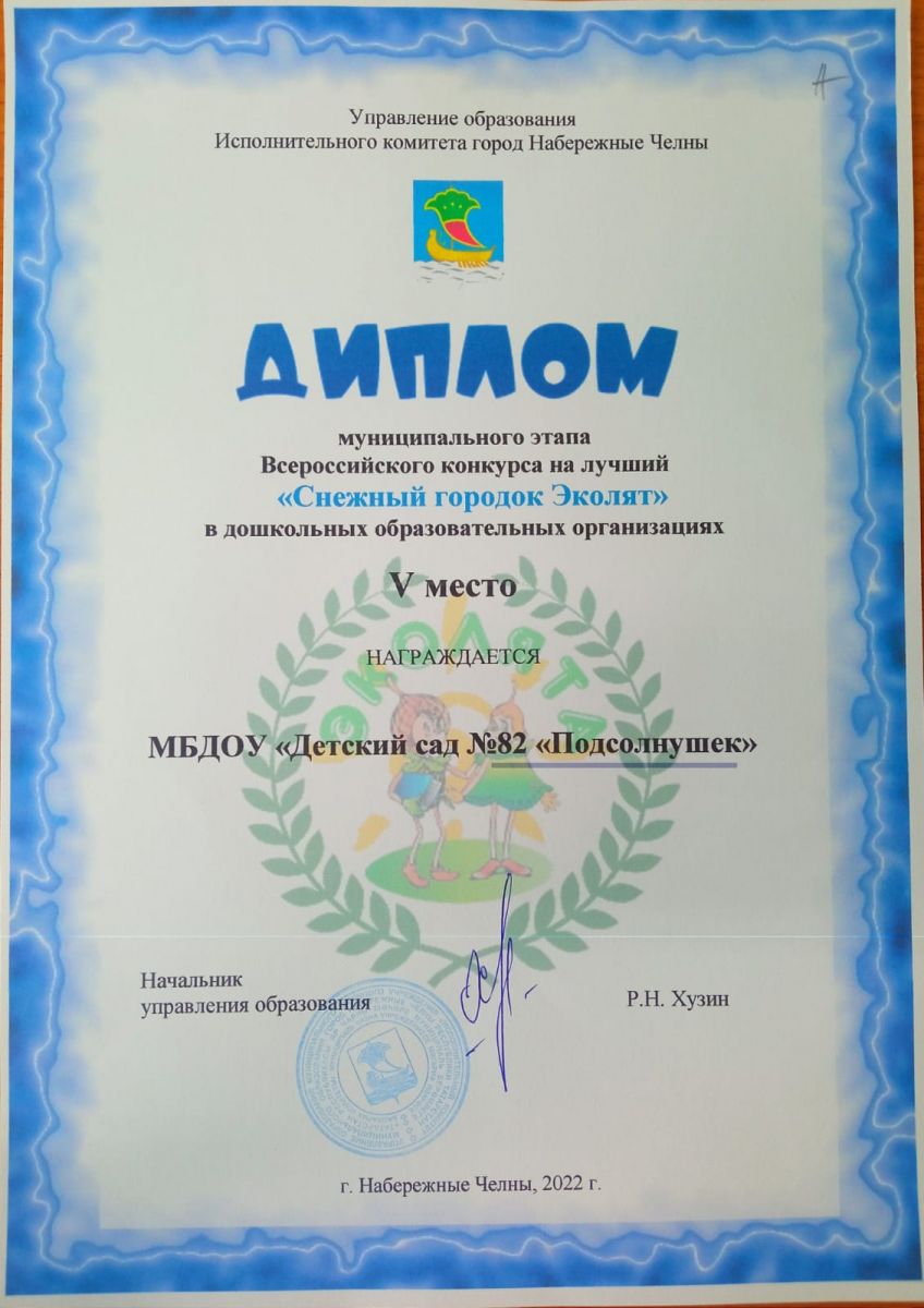 Всероссийский конкурс на лучший "Снежный городок Эколят", диплом V степени.