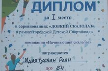 В детском саду №75 в рамках городской Детской Спартакиады прошли соревнования "Ловкий скалолаз"! И наш воспитанник Идиятуллин Раян занял 1 место в номинации "Начинающий скалолаз"! Поздравляем Раяна и желаем дальнейших успехов!!!