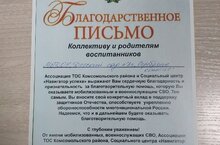 Наш детский сад, коллектив и родители воспитанников приняли активное участие в благотворительной помощи мобилизованным и военнослужащим. От имени мобилизованных, военсослужащих СВО, Ассоциации ТОС Комсомольского района, Социального центра "Навигатор успеха" всем выражена благодарность и признательность за благотворительную помощь.