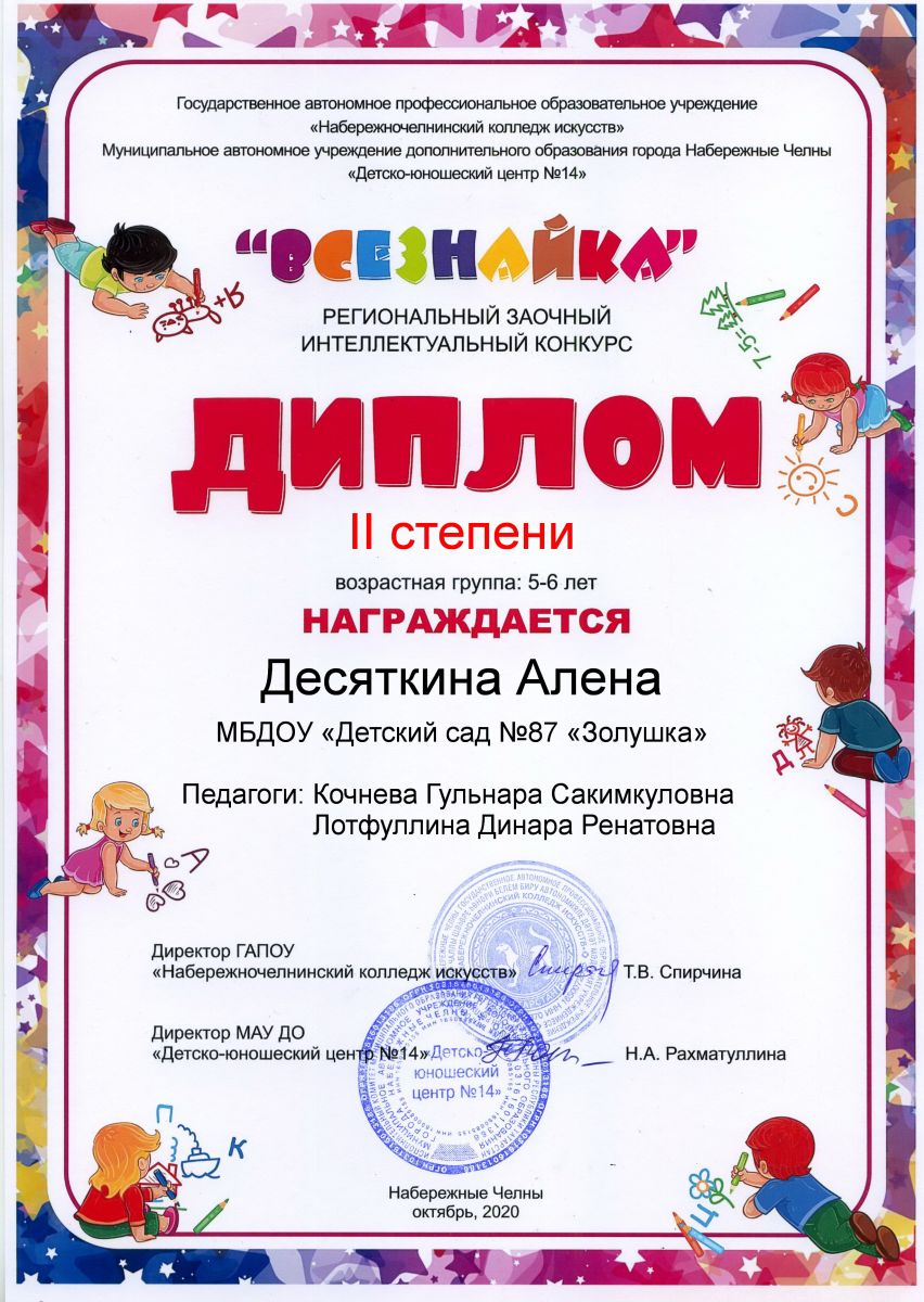 Опубликовано: 05.11.2020Воспитанники нашего детского сада приняли участие в региональном интеллектуальном конкурсе "Всезнайка" и заняли призовые места