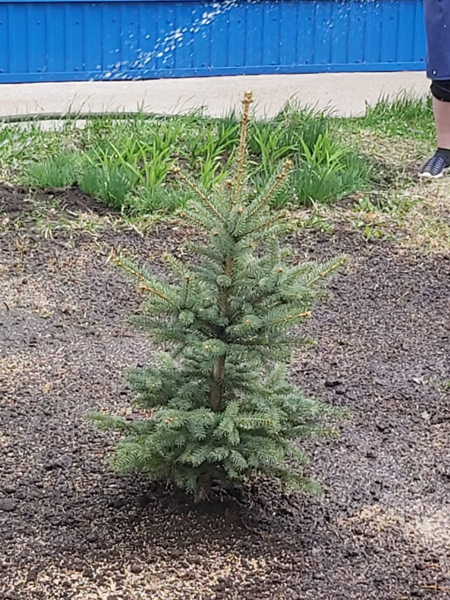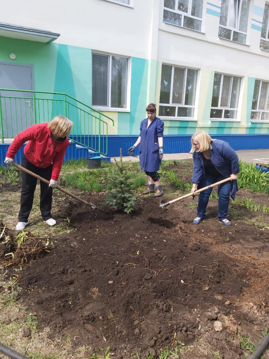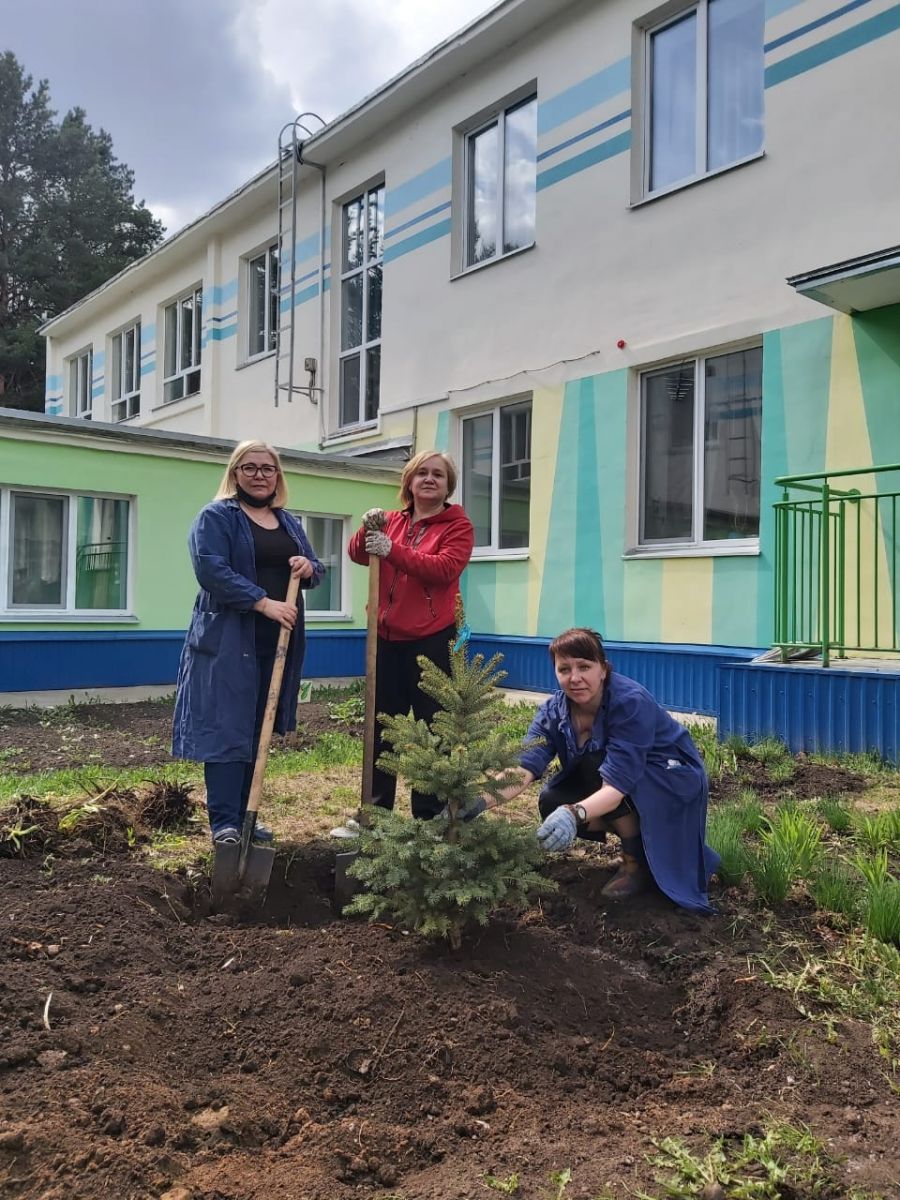 И в честь этого знаменательного события была посажена голубая ель на центральной клумбе детского сада!