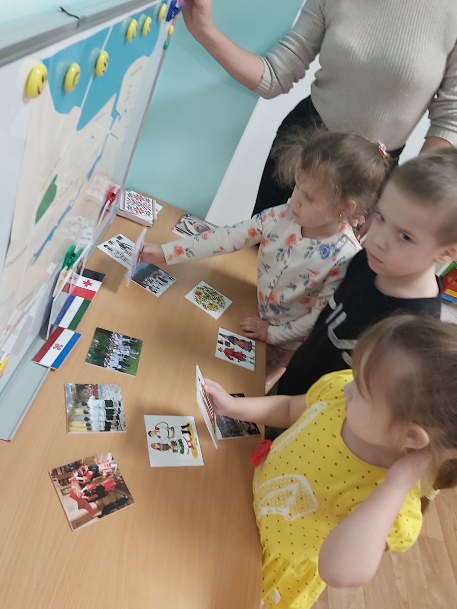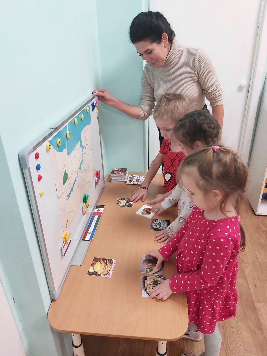 Дети средней группы знакомились с картой микрорайона нашего города и достопримечательностями в шаговой доступности. А также градообразующим предприятием и его продукцией, особенностями национальной культуры.