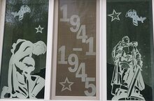 В предверии 79 - й годовщины Победы в Великой Отечественной войне и мы не остались в стороне. Педагоги с воспитанниками украсили окна детского сада праздничными рисунками, журавлями тянущимися к небу, салютами, звездами.