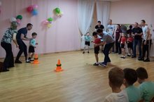 В музыкальном зале детского сада прошел спортивный празник в старших группах с приглашением пап. Мероприятие посвящено 23 февраля.