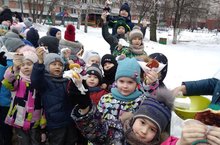 Широкой Масленицы праздникВсех на гуляние зовёт.Возьмёмся за руки все разомВ огромный станем хоровод.На блюде блинчик аппетитный,Он словно солнышко румян.Весну-красну встречаем сытно,Пусть поскорей приходит к нам -