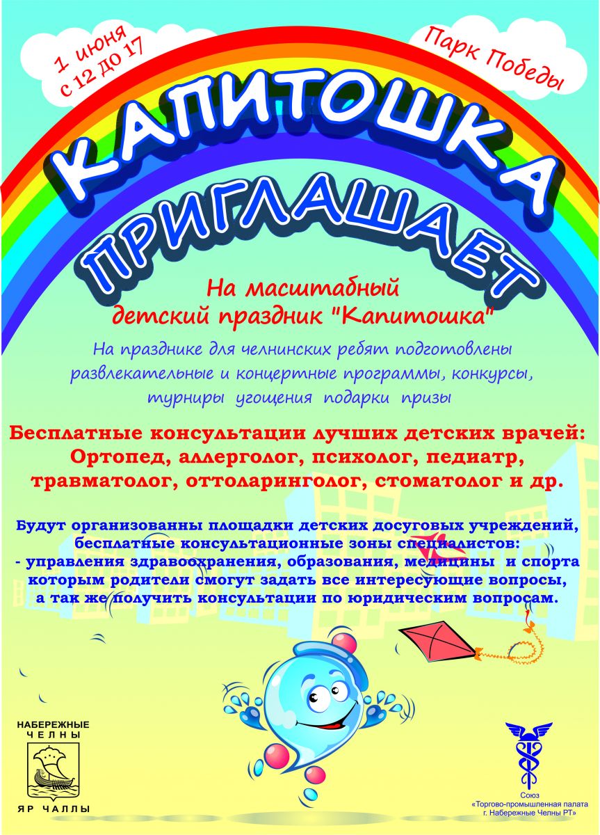 1 июня с 12.00 до 17.00 ч. в Парке Победы состоится детский праздник "Капитошка".