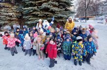 Новогодние приключения продолжаются. Дед Мороз и Снегурочка пришли поздравить малышей на прогулке. Герои вместе с детьми играли в подвижные игры, водили хороводы.