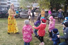 С урожаем листьев разноцветьем,К нам на праздник в детский сад пришла!