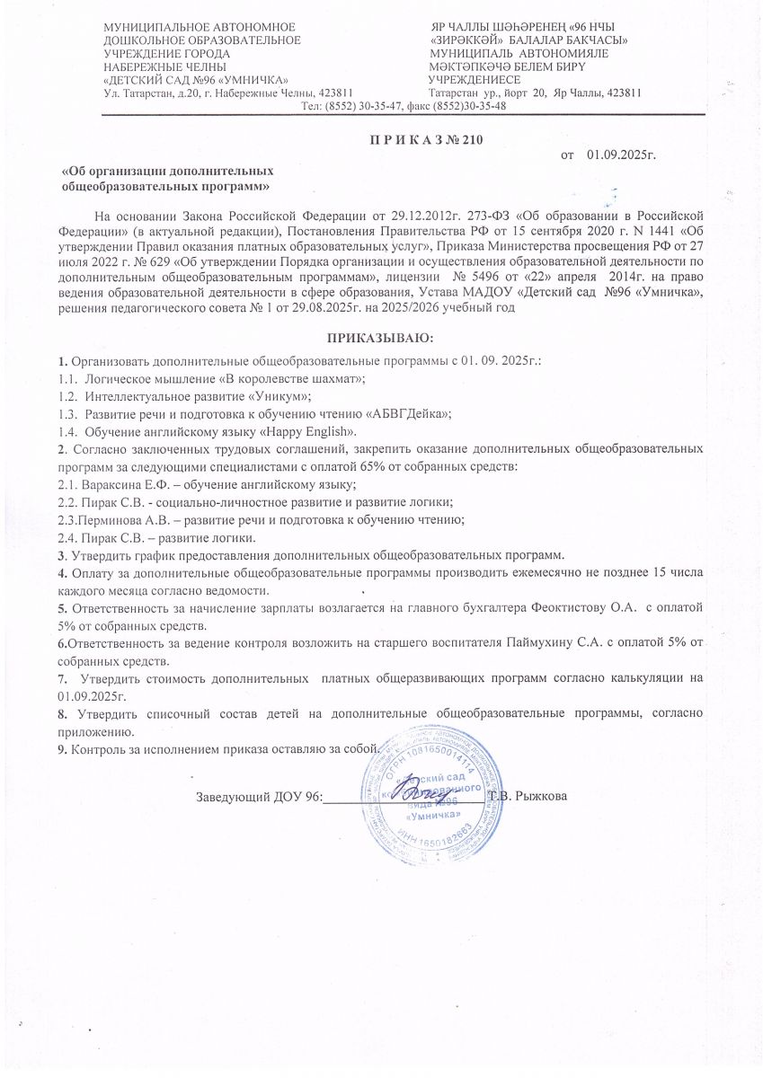 Приказ об организации дополнительных общеобразовательных программ