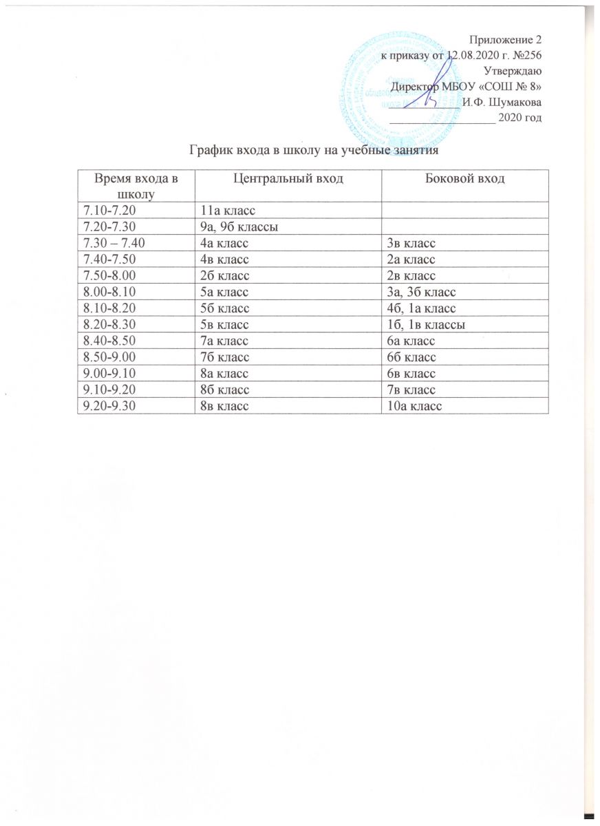 В связи с эпидемеологической обстановкой в стране, в рамка выполнения требований Роспотребнадзора, на основании приказа от 12 августа 2020 года для организованного начала 2020/2021 учебного года утвержденны следующие графики: