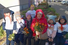 Тимуровский отряд "Пчёлки" 2 В класса МБОУ "СОШ 8" в рамках акции "Пусть будет тёплой осень жизни", приуроченной к Декаде старшего поколения, посетили педагога в прошлом, но очень любящую детей до сих пор Дудину Резеду Наиловну. Свой педагогический путь она начинала в детском саду, но и в школе успела поработать. Очень ей нравилось учить детей новому, интересному, и при встрече Резеда Наиловна показала мастер класс по изготовлению букетов из садовых цветов с клумбы за которой ухаживала всё лето, а так же посеяла с детьми семена цветов под зиму, чтобы весной опять радовала их красота. "Я конечно уже старенькая и ноги плохо ходят, но главное в душе оставаться молодой, радоваться каждому дню, и так же хочется чтобы все дети улыбались" - говорит Резеда Наиловна. Тимуровский отряд Пчёлки поздравляет Резеду Наиловну с Днём Старшего поколения, желает здоровья, душевных сил и яркой тёплой осени! -