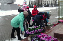 В рамках военно-патриотического месячника учащиеся 4 б класса приняли участие в акции "Вечная память героям!". Познакомившись с биографиями некоторых земляков, чьи имена занесены на Стену Почета памятника "Родина - Мать", учащиеся класса почтили память героев возложением цветов к Вечному огню.