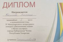 Городской конкурс IV Международного литературного конкурса "Джалиловские чтения" . Поздравляем Калмыкову Анастасию !