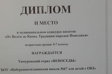 16.12.2021 года тимуровский отряд " Непоседы " получил Диплом 2 степени за участие в муниципальном конкурсе визиток " От Волги до Камы. Традиции народов Поволжья". Поздравляем победителей!