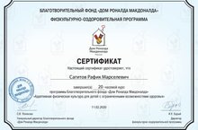 Учитель физической культуры ГБОУ "Набережночелнинская школа №67" прошел 20-часовой курс программы Благотворительного фонда "Дом Рональда Макдоналда" "Адаптивная физическая культура для детей с ОВЗ"