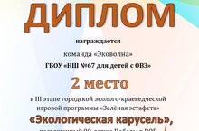 Наша школьная команда Эковолна приняла участие в 3 этапе городской эколого-краеведческой игровой программе "Зеленая эстафета".