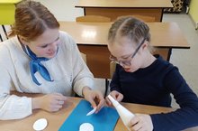 И снова Непоседы в деле!!!Сегодня тимуровцы школы №67 для детей с ОВЗ провели в рамках акции "Вам дарим доброту и радость" мастер-класс для подшефной 1 а класса Шагаловой Танюши. Вместе учиться так здорово!!!А результат - аппликация "Веселый снеговик", порадовал всех!!!Ведь на носу что?Новый год!!!